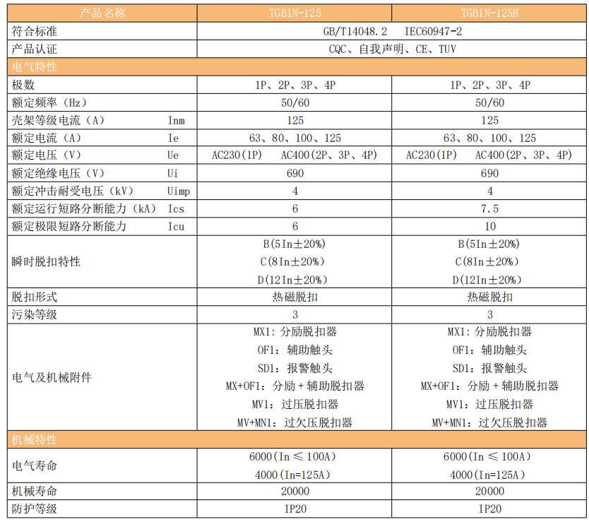 TGB1N-125(H) 塑料外殼式斷路器(以下簡稱斷路器)主要適用于交流 50/60Hz,額定工作電壓 230V/400V,額定電流至 125A 及以下的線路中,起過載、短路、隔離保護,也可在正常情況下不頻繁通斷電氣裝置和照明線路。