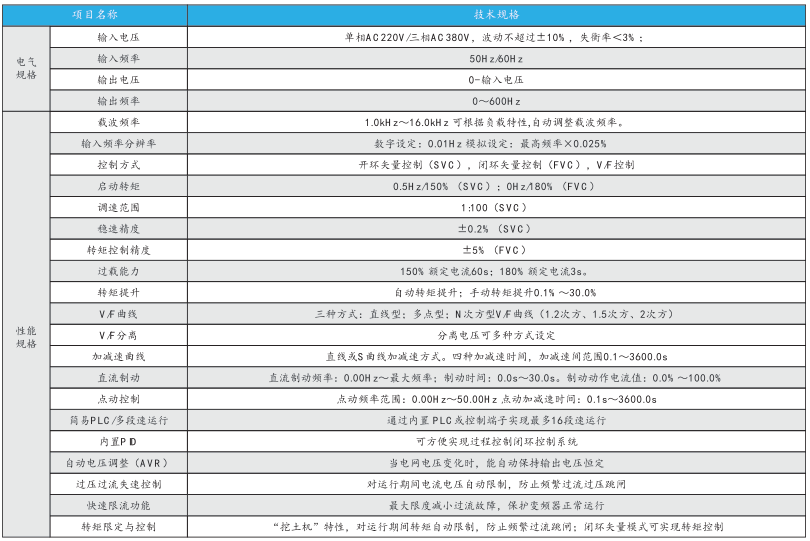 TGEV6系列變頻器是一款無速度傳感器電流矢量型變頻器。在提高穩定性的前提下增加了電機參數自辨識、模擬量電流輸出、開關量...